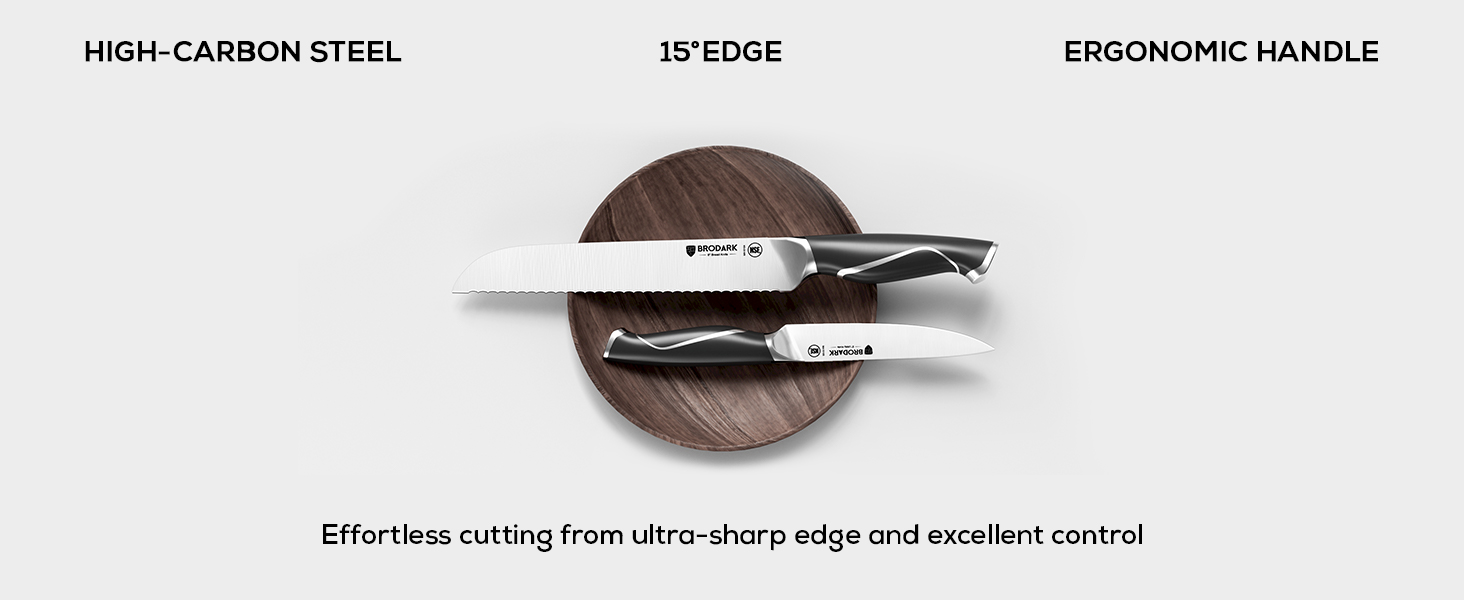 - Effortless Cutting: 15° blade edges and well-balanced design on this knife set reduce the effort required for cutting, letting you glide through food with ease and precision